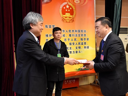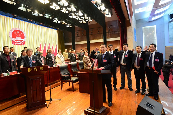 新当选的监察委员会主任和区人大常委会委员向宪法宣誓