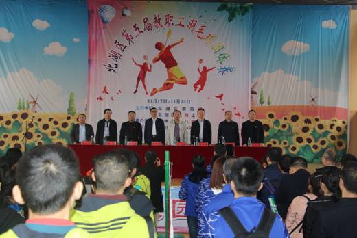 北湖区人民政府副区长曹行平出席活动,并作重要讲话。他指出,广泛开展全民健身活动,加快推进体育强国建设是党的十九大提出的新目标。今天,我区教育工会开展第五届教职工羽毛球团体赛就是其生动实践,各学校要以此为契机,大力推广好全民健身活动,共同享受阳光体育带来的快乐。他希望各代表队赛出精神、赛出水平,赛出友谊。他衷心祝愿北湖区第五届教职工羽毛球团体赛取得圆满成功!