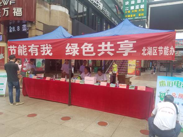 北湖区政府主办的“北湖区2017年度节能周宣传和低碳日集中宣传活动”在兴隆路步行街举行,区经科局积极参与现场科普宣传,为市民送去了节能和环保知识。