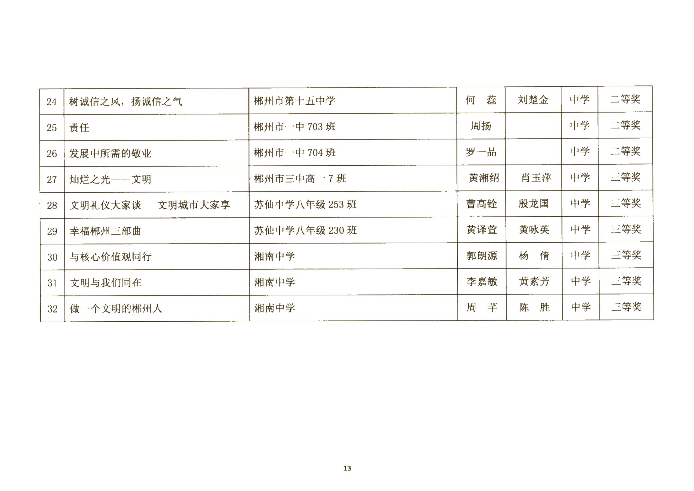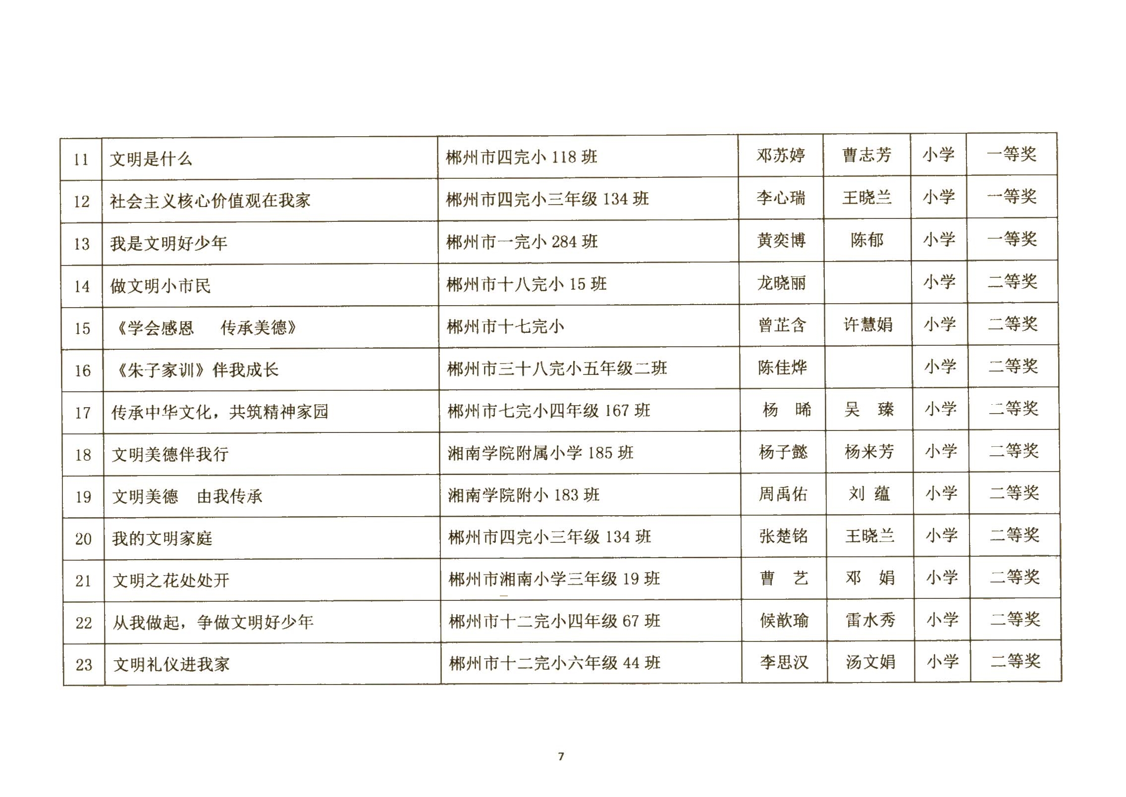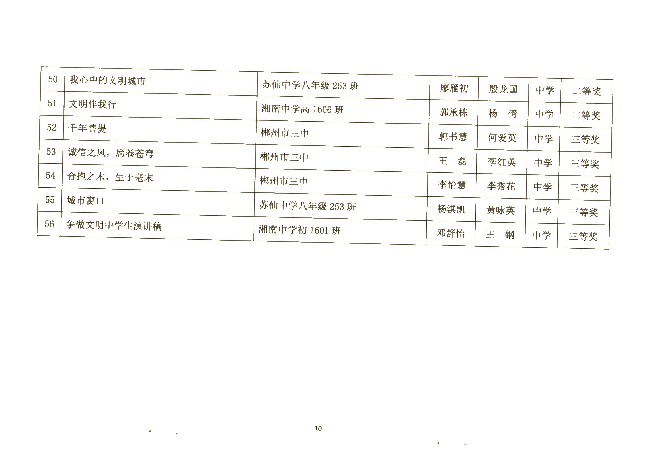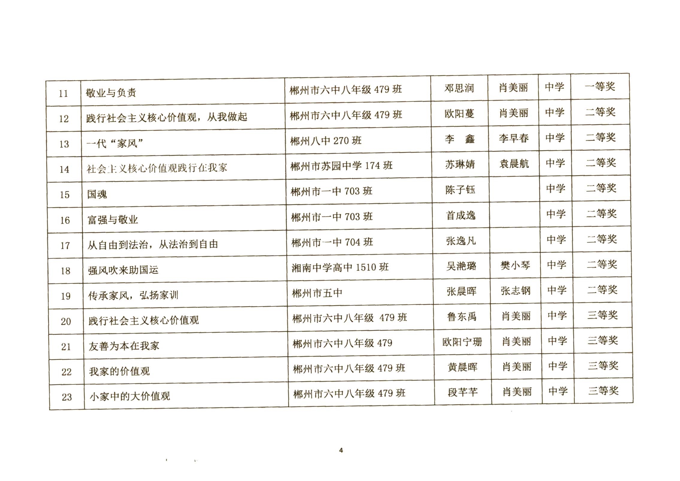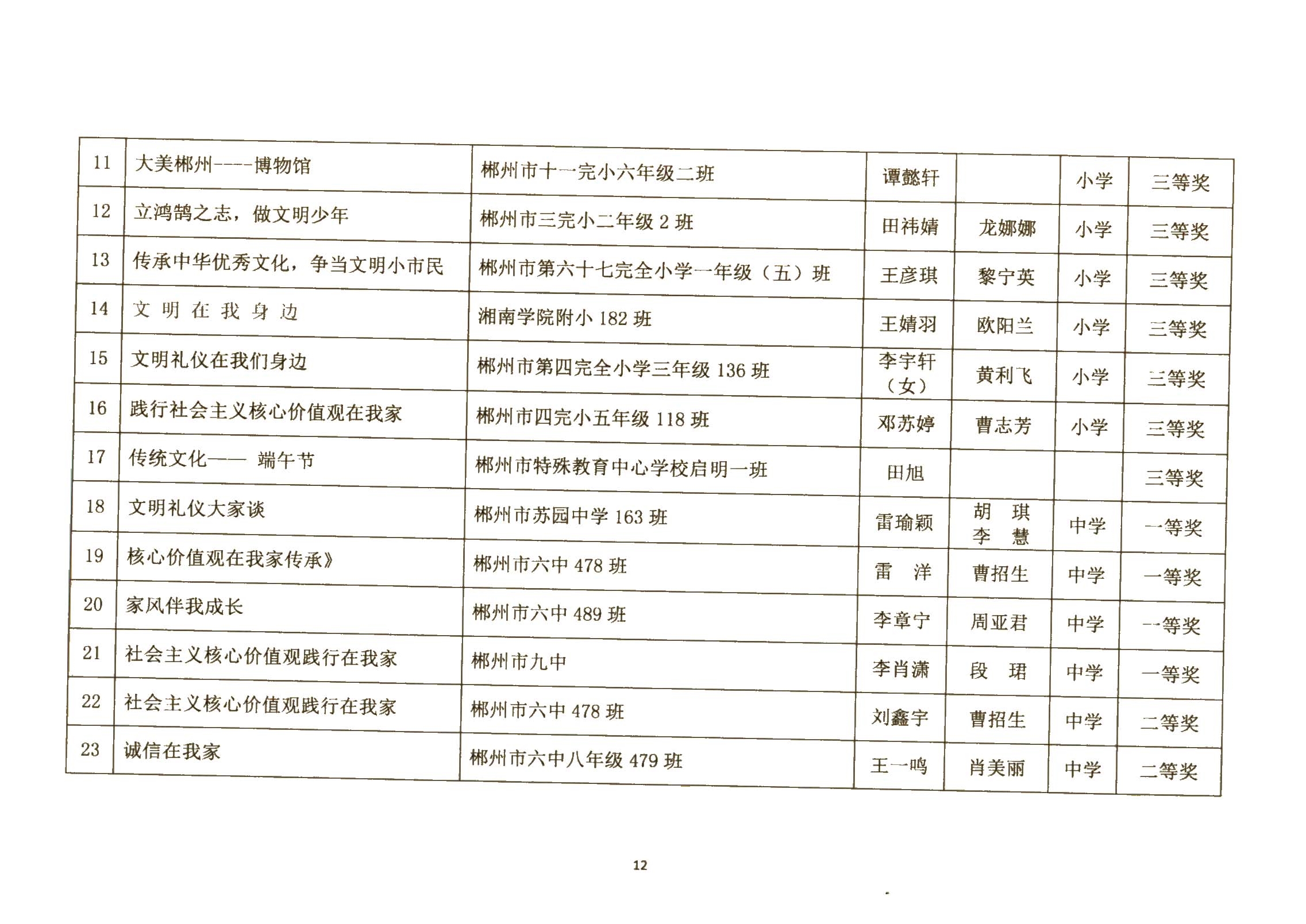 关于郴州市城区学校社会主义核心价值观进校园征文、演讲比赛活动结果的通报