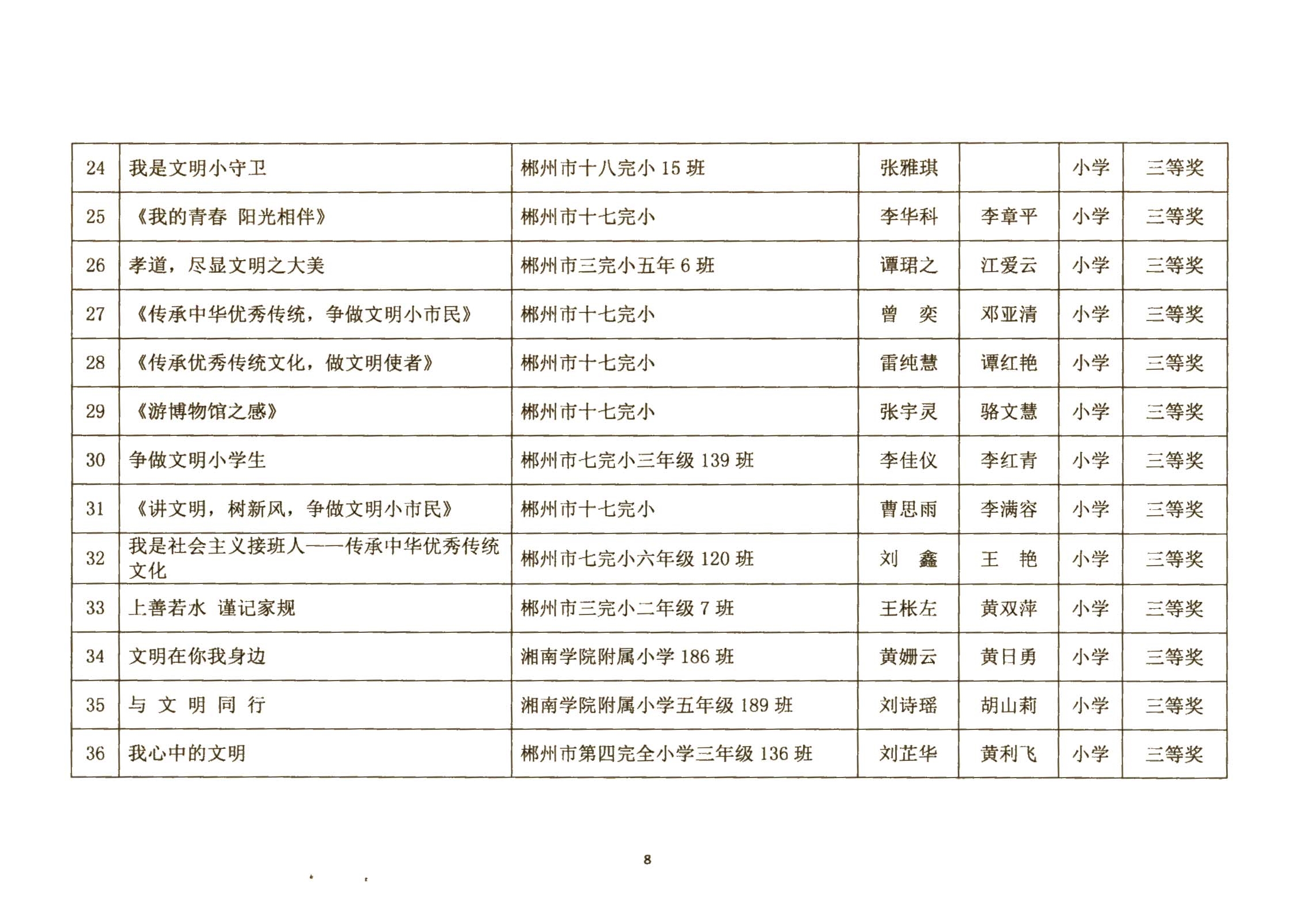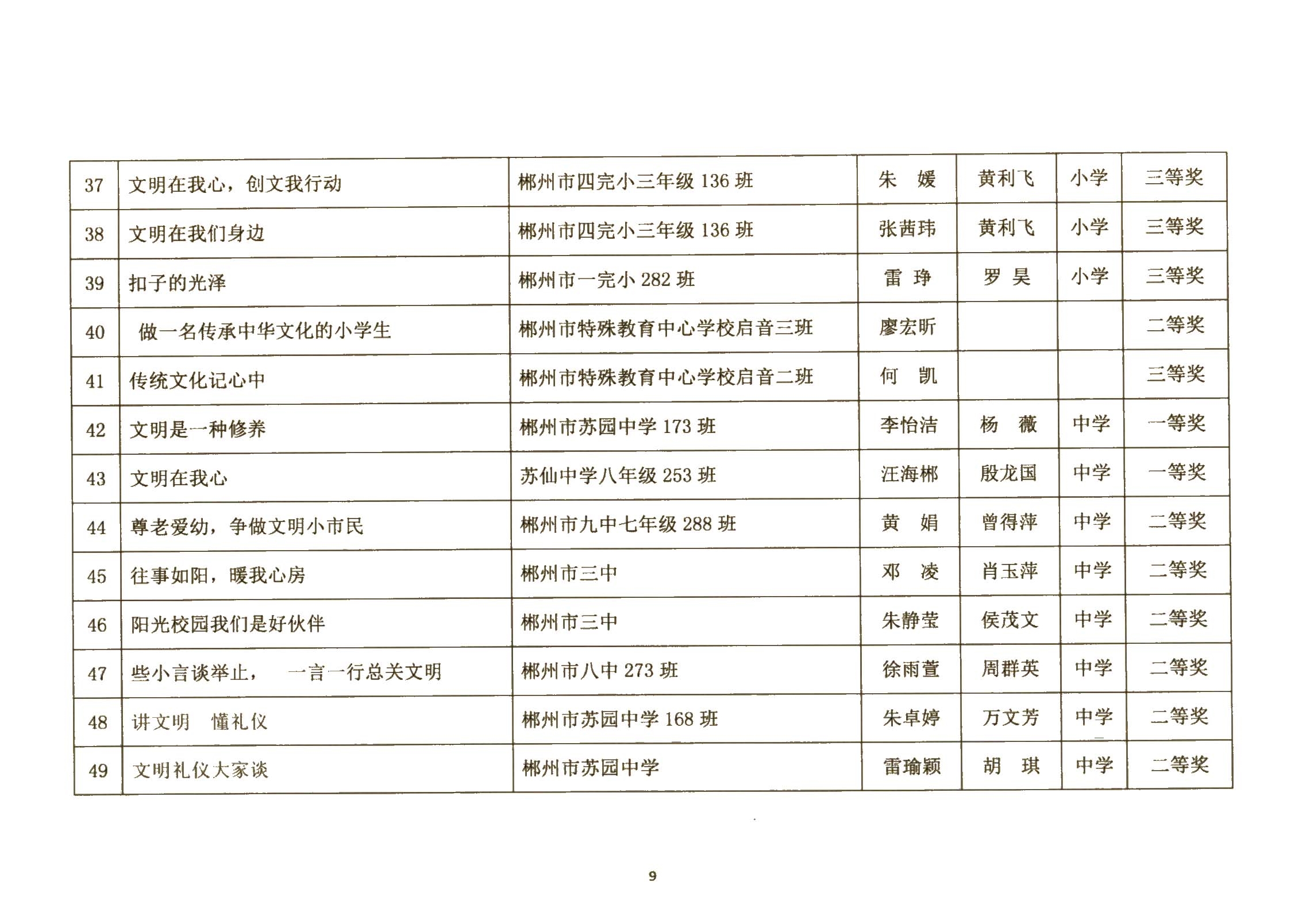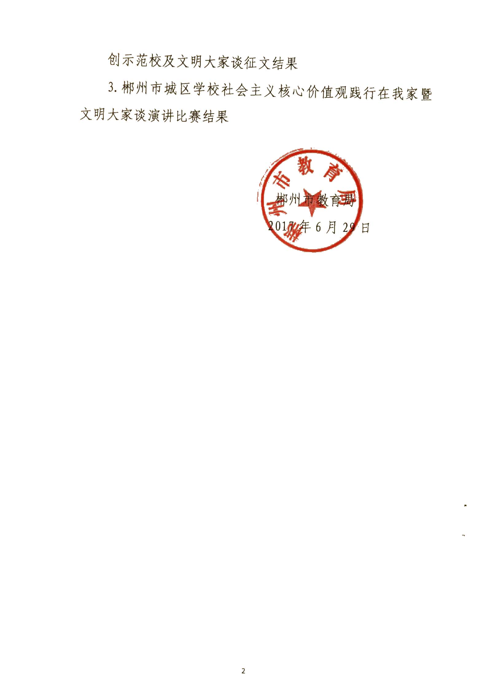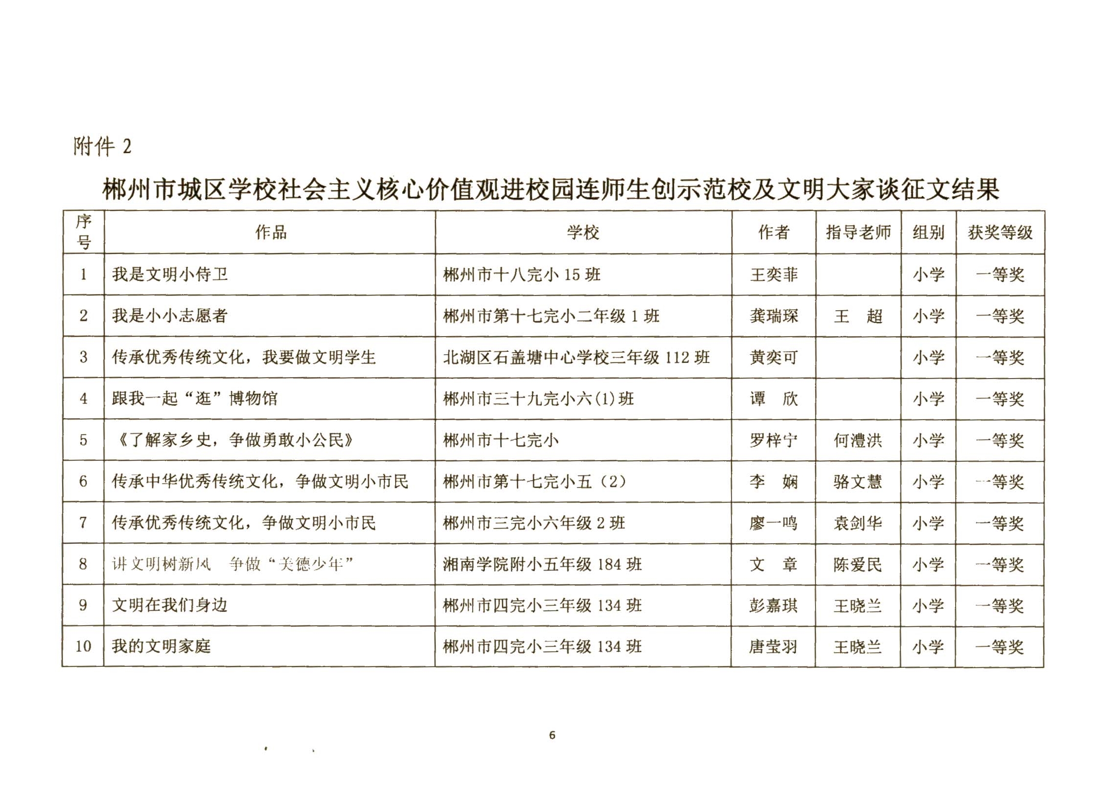 关于郴州市城区学校社会主义核心价值观进校园征文、演讲比赛活动结果的通报