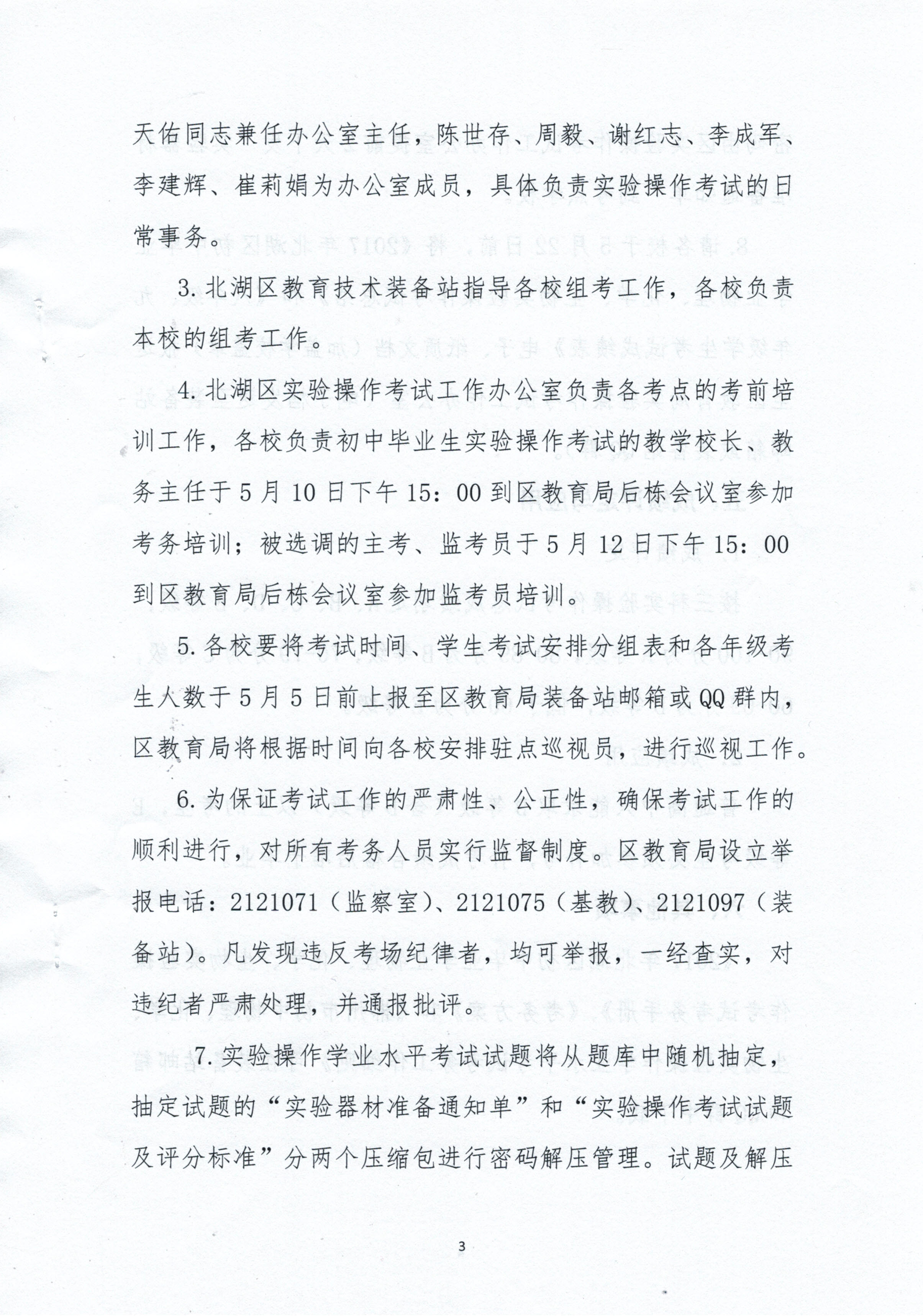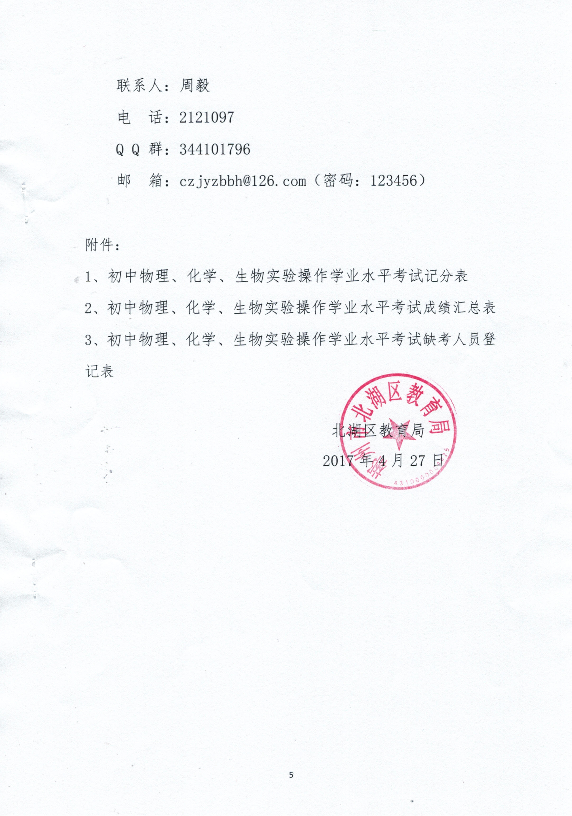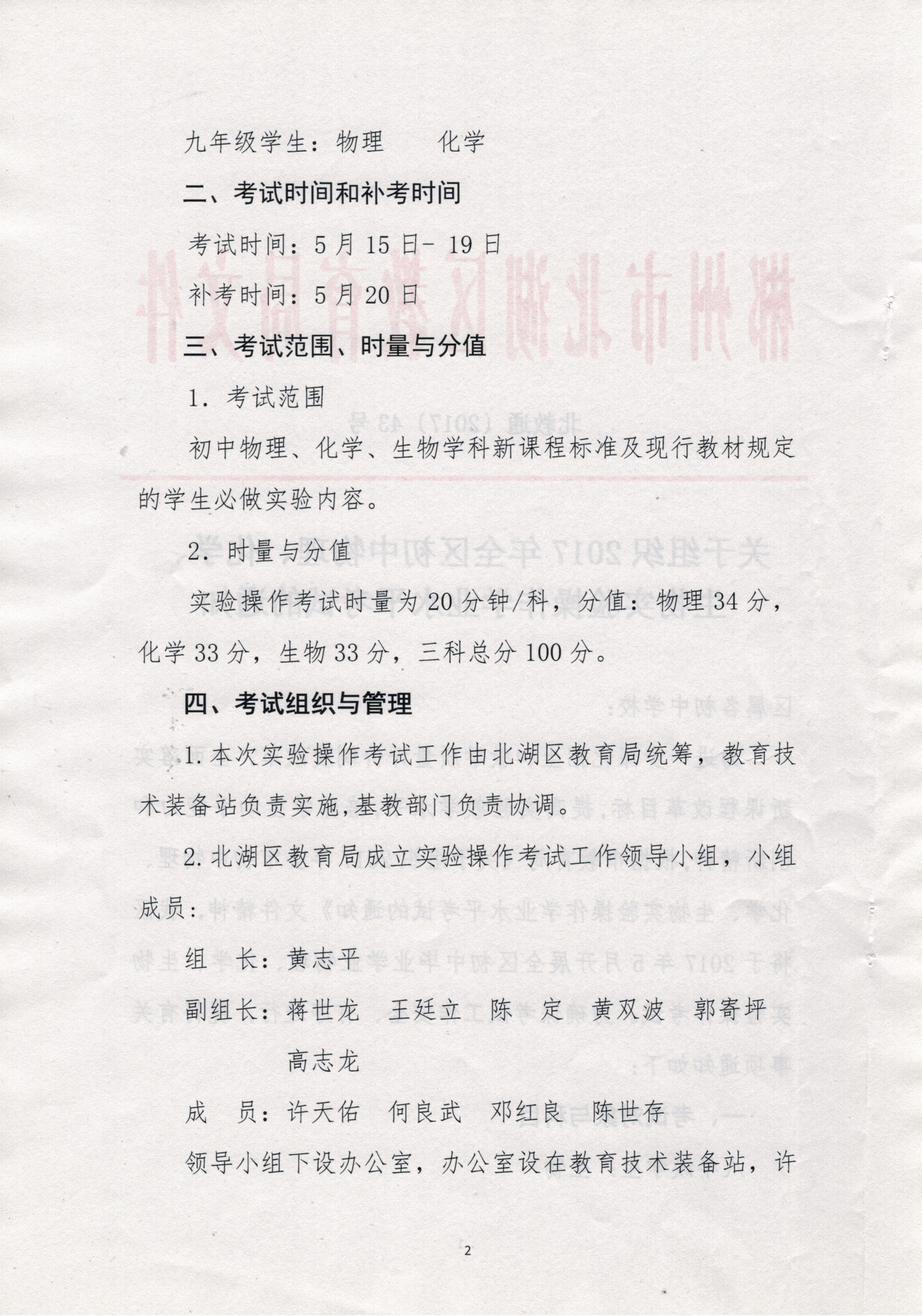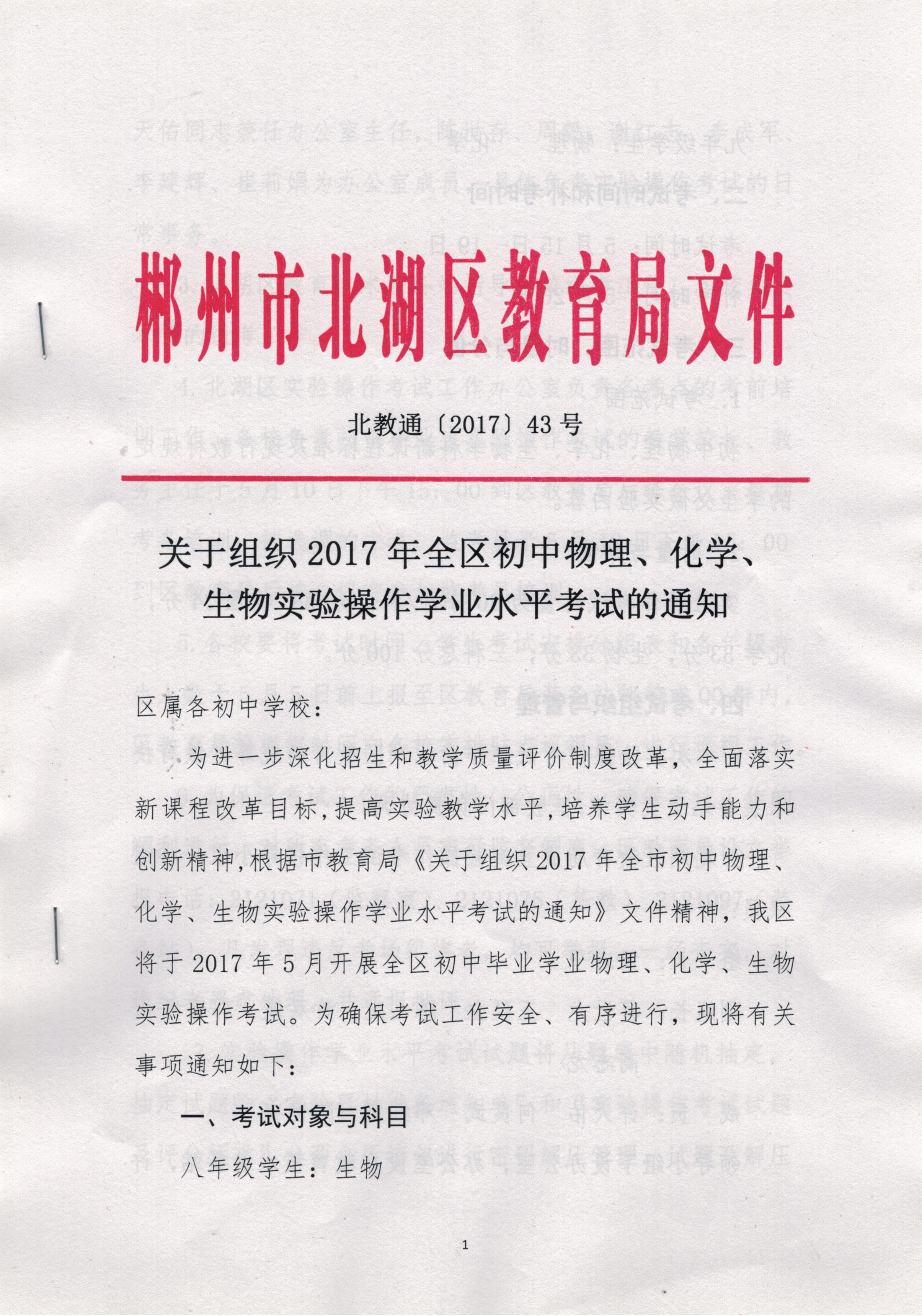 关于组织2017年全区初中物理、化学、生物实验操作学业水平考试的通知